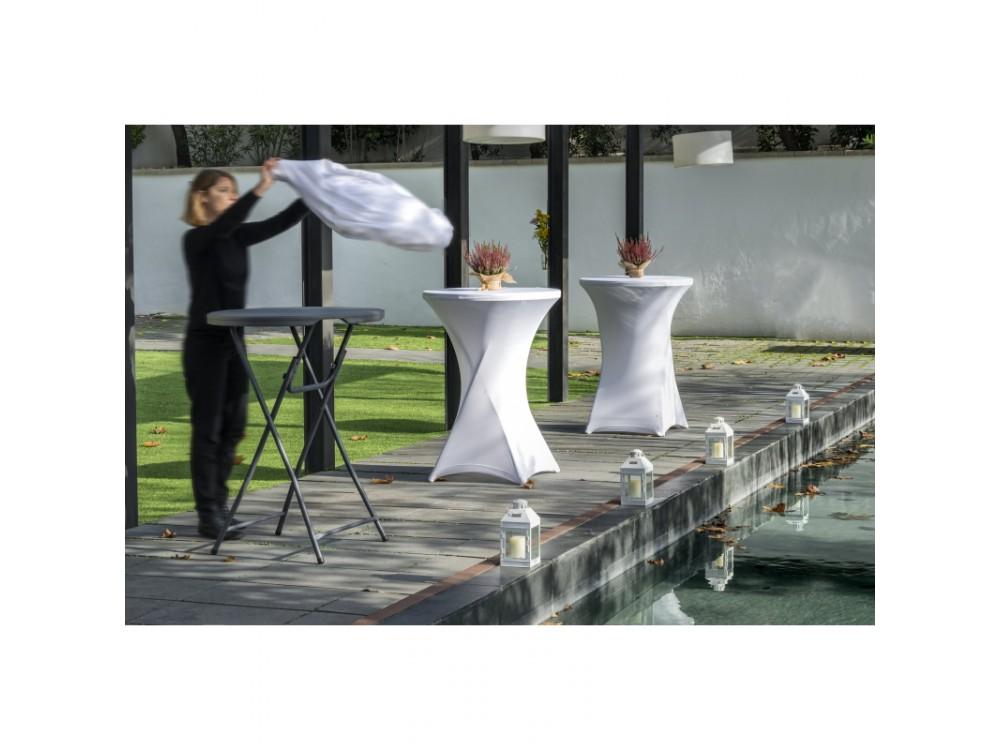 Banketový skládací stůl COCTAIL 80 je vyroben z oceli s práškovým nástřikem. Deska stolu je vyrobena z vysoce hustotního polyetylenu. Stůl lze velmi snadno a rychle smontovat a demontovat. Velká základna stolu poskytuje jeho větší stabilitu.